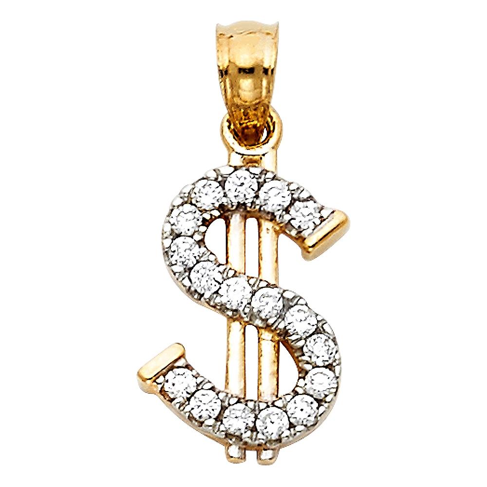 14k Yellow Gold Cubic Zirconia Dollar Sign Pendant Necklace 10x14mm-Pendant for Women - 1.0 Grams