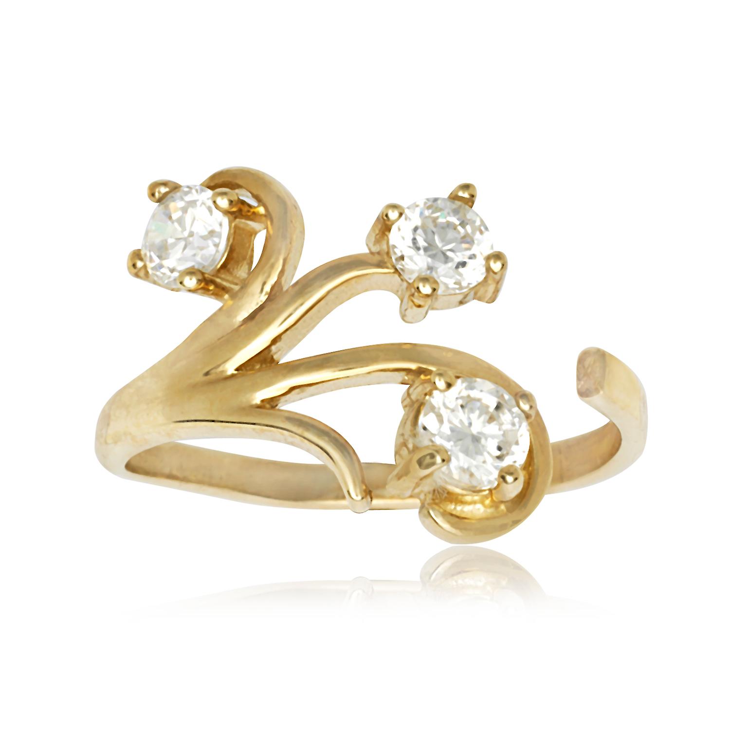 14k Yellow Gold Cubic Zirconia Top Adjustable Flowers Body Jewelry toe ring-toe ring for Women