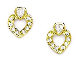 14k Yellow Gold Cubic Zirconia Love Heart Screw Back Earrings 10x8mm Stud Earring for Women