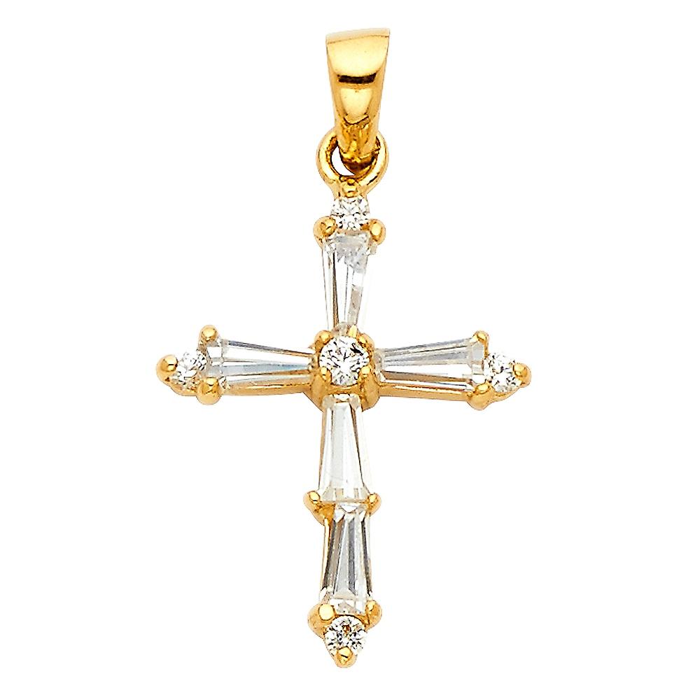 14k Yellow Gold Cubic Zirconia Religious Faith Cross Pendant Necklace 15x25mm-Pendant for Women