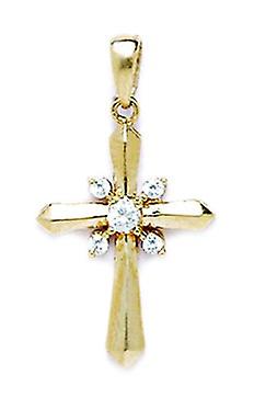 14k Yellow Gold Cubic Zirconia Religious Faith Cross Pendant Necklace 26x14mm-Pendant for Women
