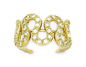 14k Yellow Gold Cubic Zirconia Adjustable Wavy Body Jewelry toe ring-toe ring for Women