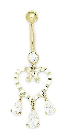 14k Yellow Gold Cubic Zirconia 14 Gauge Dangling Love Heart Pear Shapes Belly Ring 39x15mm Body Piercing-Ring for Women