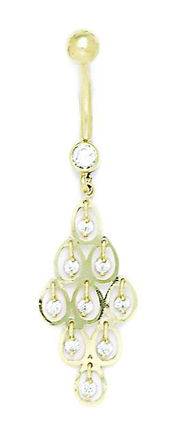 14k Yellow Gold Cubic Zirconia 14 Gauge Pear Shape Drop Body Jewelry Belly Ring 47x13mm-Body Piercing-Ring for Women