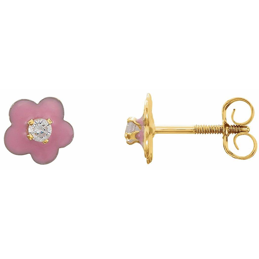 14k Yellow Gold Simulated White Cubic Zirconia Polished-Cubic-Zirconia Flower Enamel Earrings Stud Earring for Women
