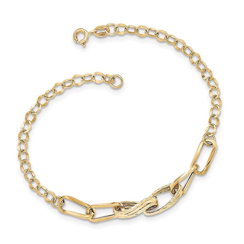 14k Yellow Gold Spring-Ring Polished Textured Fancy Link Bracelet 7.75 Inch 6mm Wide-Link-Bracelet for Women