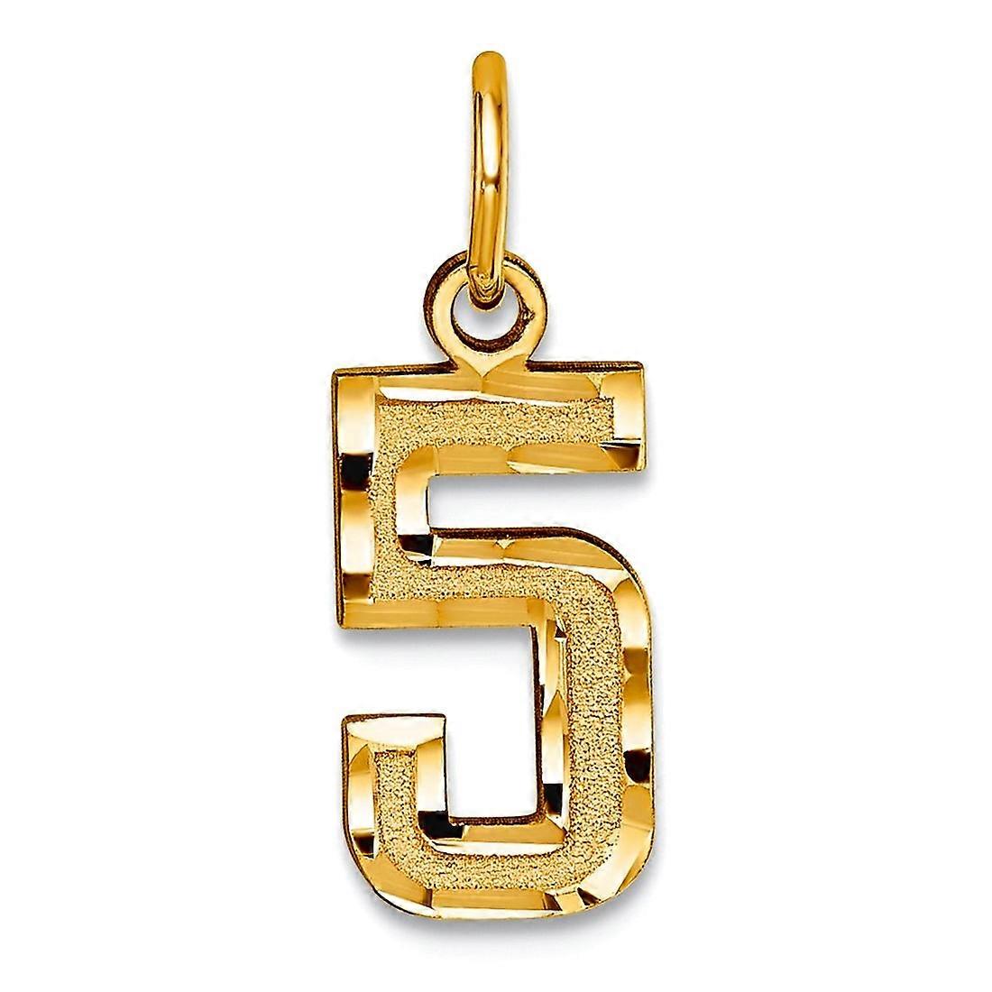 14k Yellow Gold Solid Satin Small Sparkle Cut Sport game Number Charm 20x7.8mm Pendant Necklace for Women