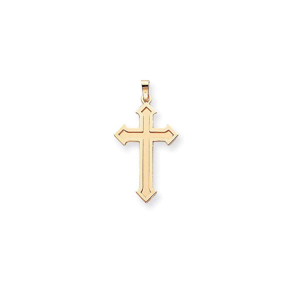 14k Yellow Gold Solid Satin Polished Not engraveable Passion Religious Faith Cross Pendant Necklace 36x19mm Wide-Pendant