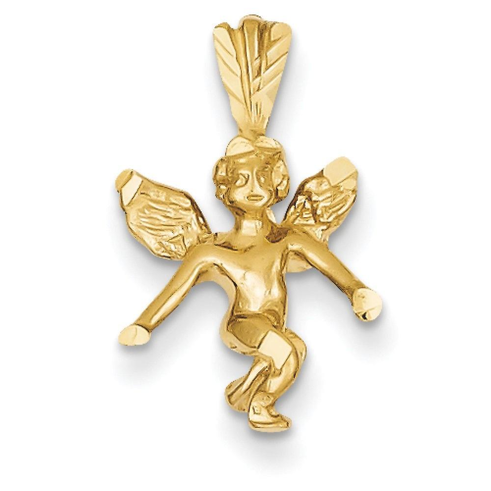 14k Yellow Gold Solid Satin Polished Guardian Angel Charm 14x7mm Pendant Necklace for Women