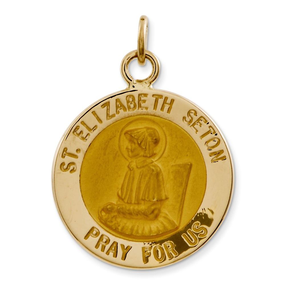 14k Yellow Gold Solid Satin Polished back St. Elizabeth Seton Medal Charm 14.8x20.3mm Pendant Necklace for Women