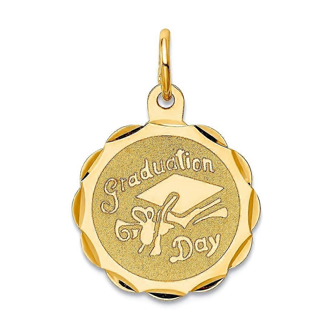14k Yellow Gold Solid Satin Polished Graduation Day Charm 18x16mm Pendant Necklace for Women