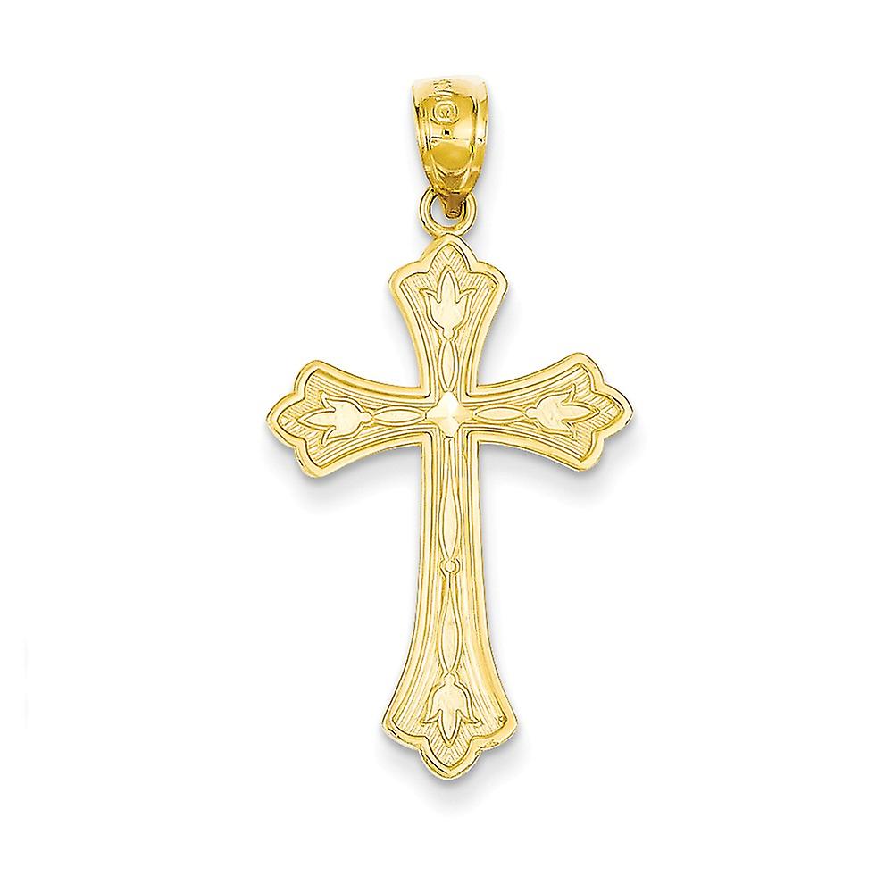14k Yellow Gold Solid Satin Polished Not engraveable Sparkle Cut Religious Faith Cross Pendant Necklace 17.8x33.8mm-Pend