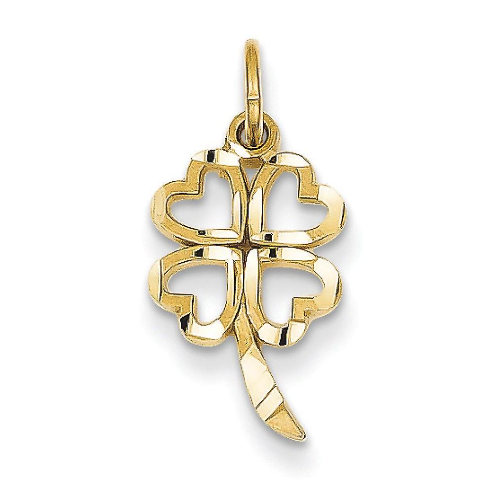14k Yellow Gold Solid Satin Polished 4 Leaf Clover Charm 21.4x9.7mm Pendant Necklace for Women
