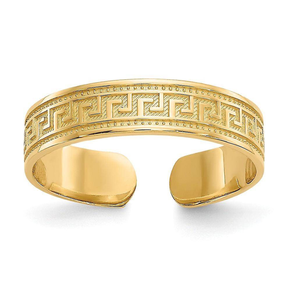 14k Yellow Gold Solid Textured Polished Greek Key toe ring-toe ring for Women - .9 Grams