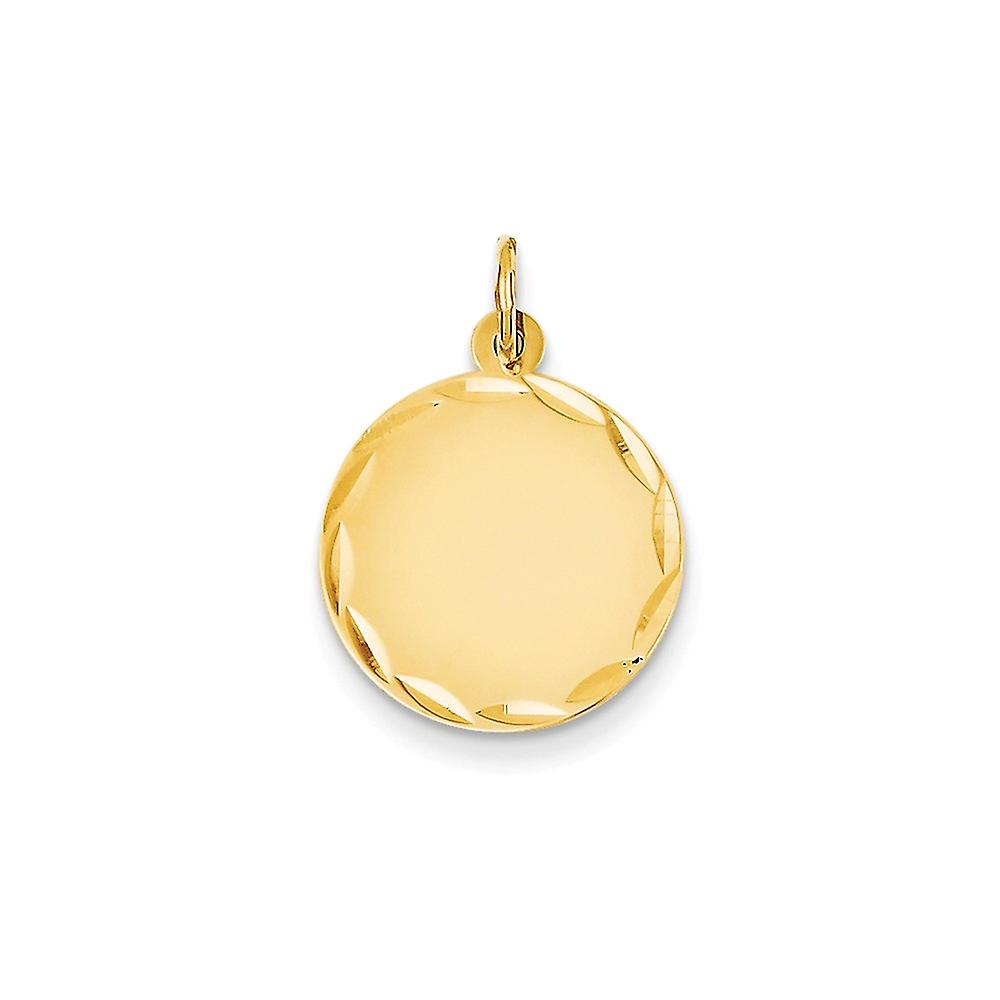 14k Yellow Gold Solid Faceted Polished Etched .011 Gauge Engraveable Round Disc Charm 23x16mm Wide Pendant Necklace for