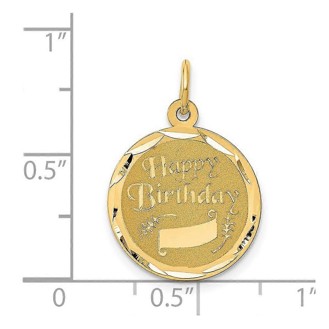 14k Yellow Gold Solid Faceted Polished Laser Etched Happy Birthday Charm 23.4x16.1mm Pendant Necklace for Women