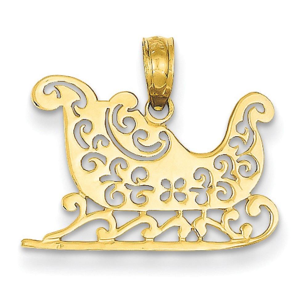 14k Yellow Gold Solid Polished Sleigh Pendant Necklace 16x19mm-Pendant for Women - .8 Grams