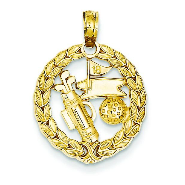 14k Yellow Gold Solid Polished Golf Theme Pendant Necklace 22.5x16.7mm-Pendant for Women - 1.4 Grams