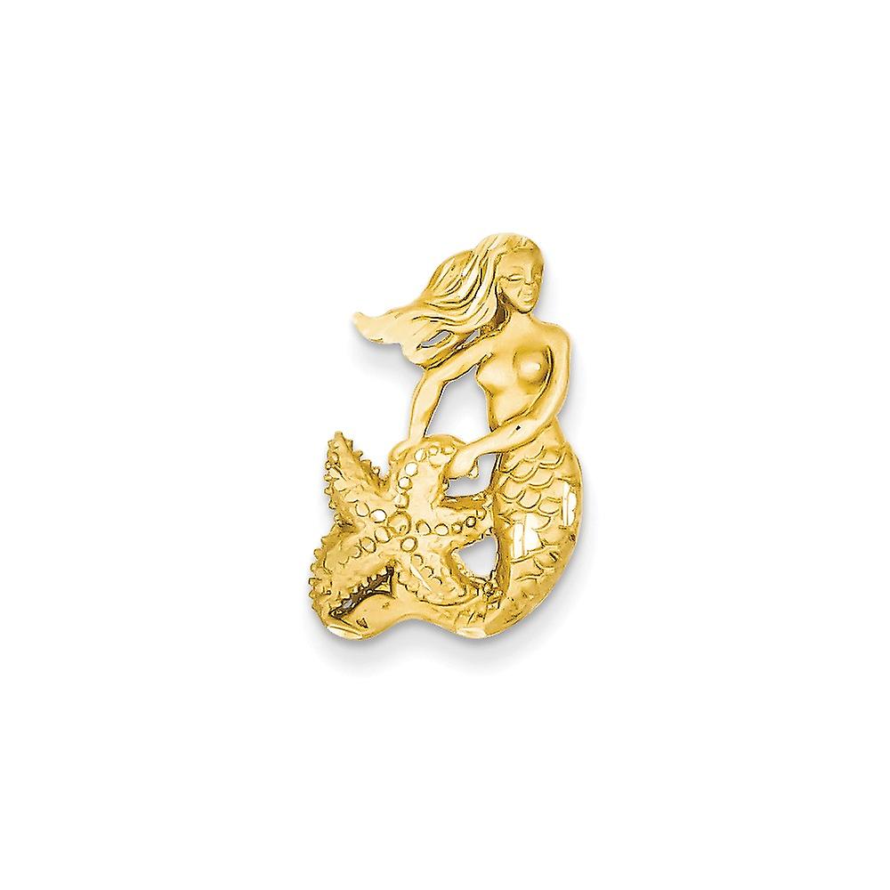 14k Yellow Gold Solid Polished Satin Sparkle Cut Mermaid Pendant Necklace 20x14mm-Pendant for Women