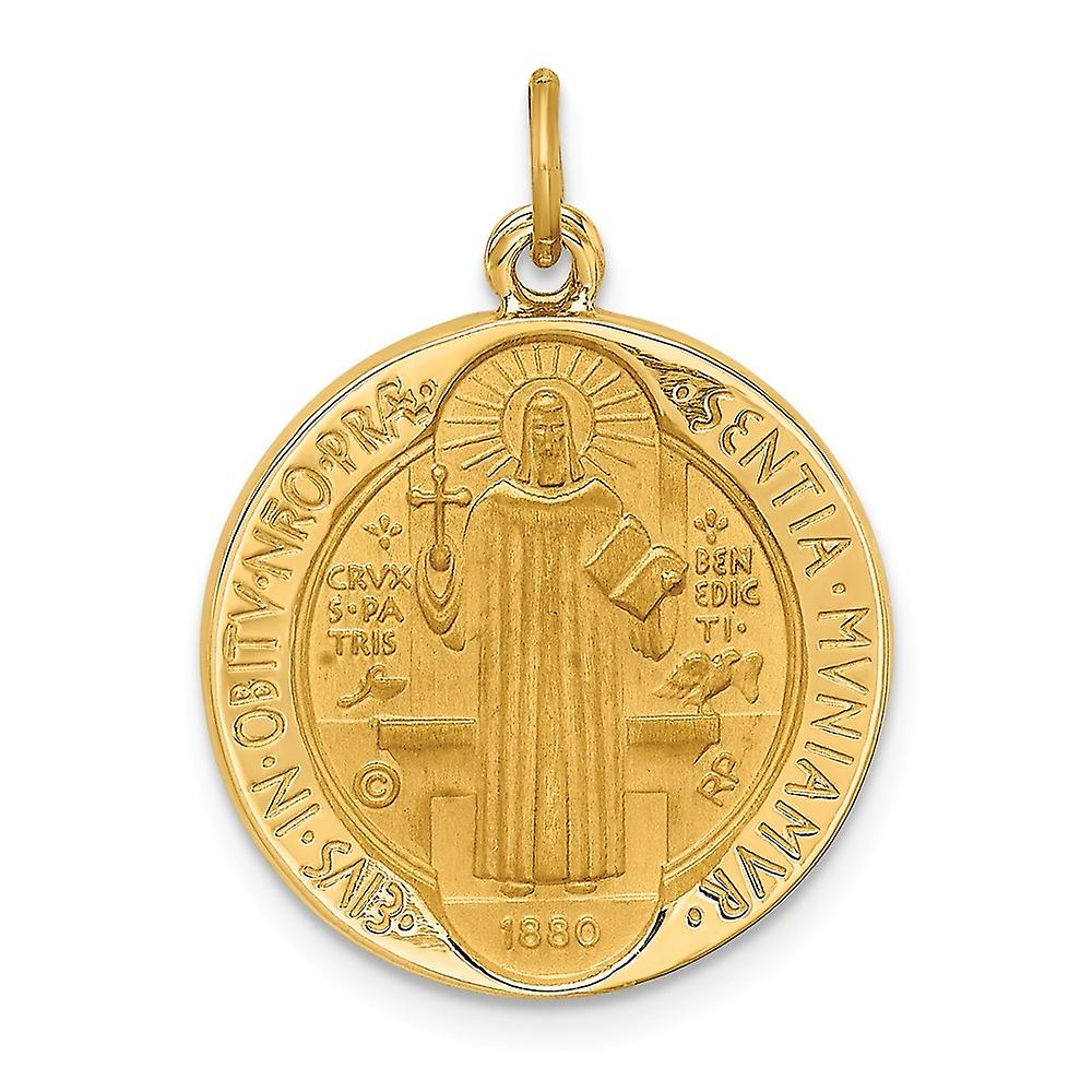 14k Yellow Gold Solid Polished Satin Round St. Benedict Medal Pendant Necklace 24.5x18mm Wide 1.20mm Thick-Pendant for W