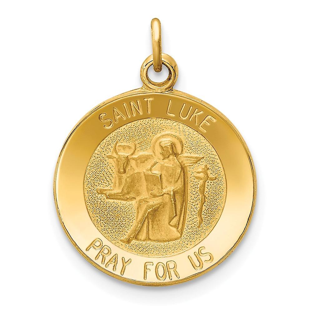 14k Yellow Gold Solid Polished back-Polished and satin Saint Luke Medal Charm 14.9x20.2mm Pendant Necklace for Women
