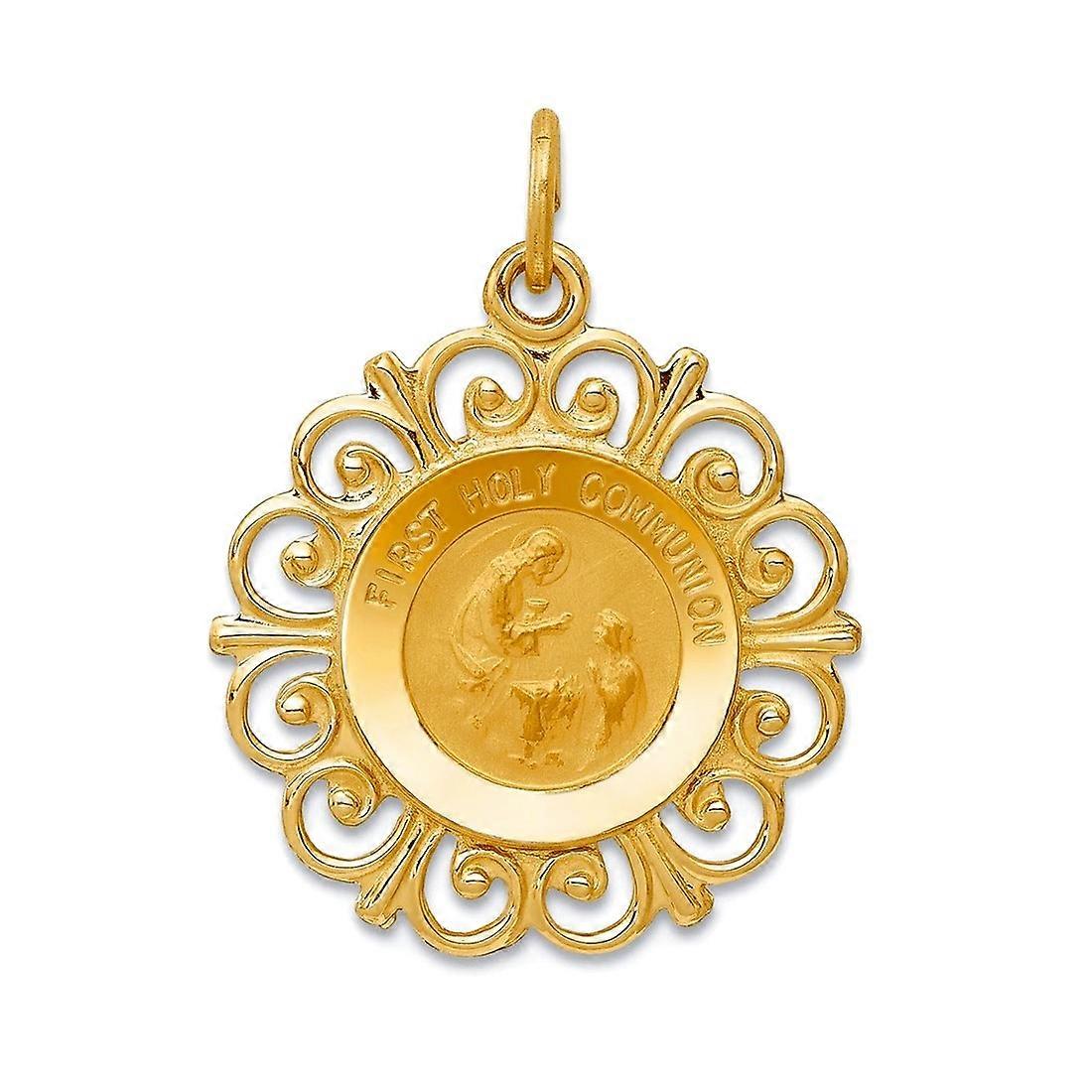 14k Yellow Gold Solid Polished back-Polished and satin First Holy Communion Charm 19x19mm Pendant Necklace for Women