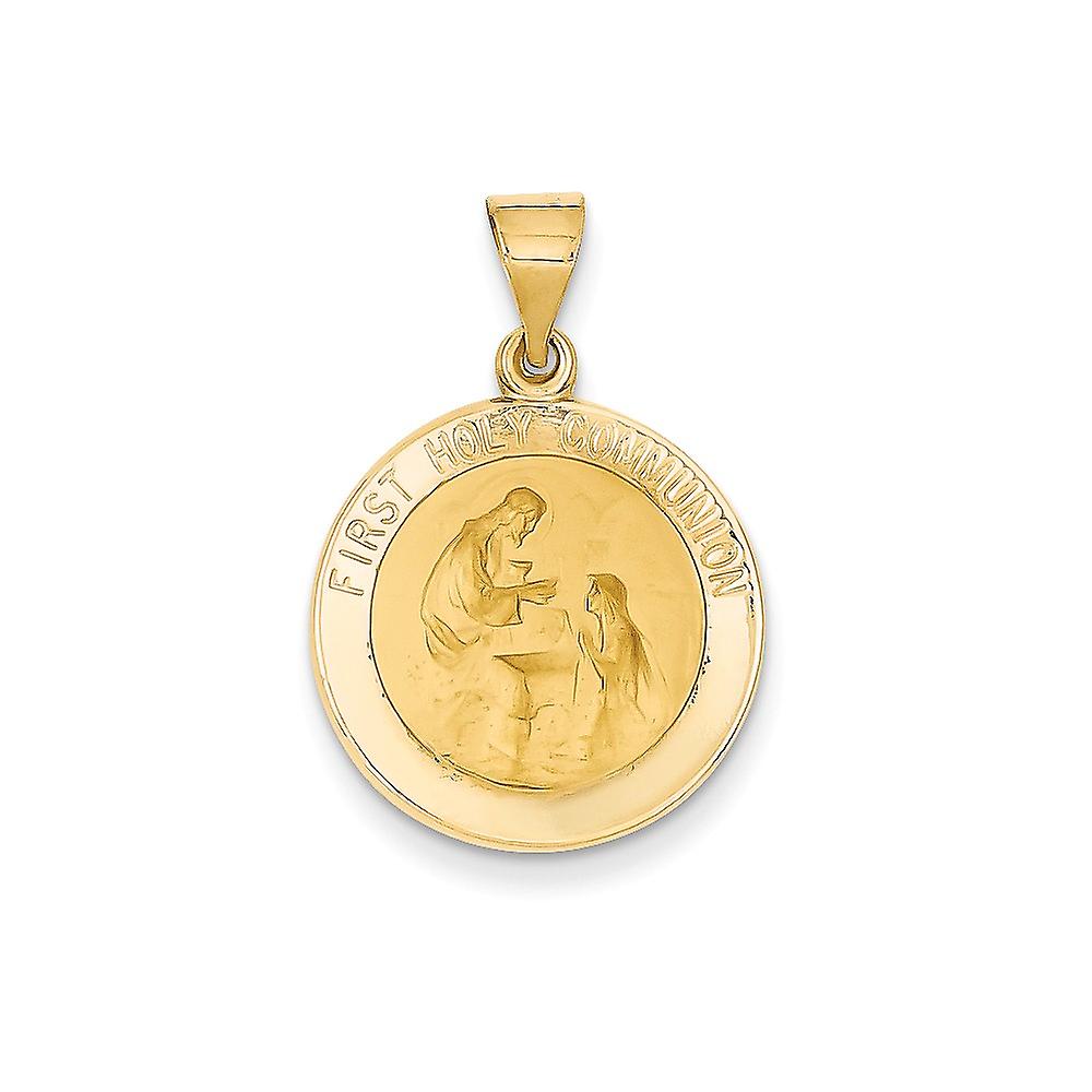 14k Yellow Gold Solid Polished back-Polished and Satin First Holy Communion Medal Pendant Necklace-Pendant for Women