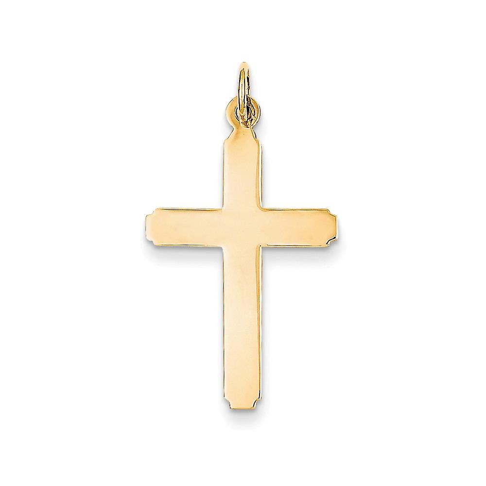 14k Yellow Gold Solid Polished back Engraveable Religious Faith Cross Charm 28x14mm Wide Pendant Necklace for Women