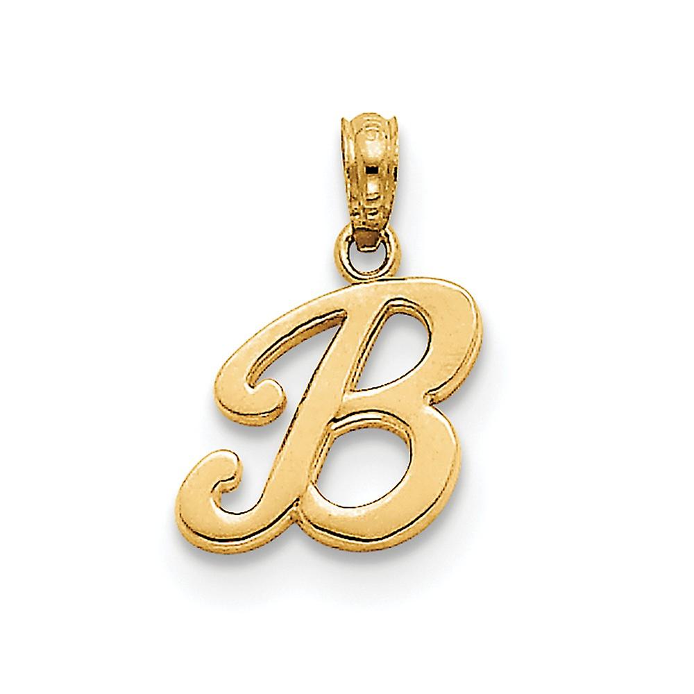 14k Yellow Gold Solid Polished back B Script Letter Name Personalized Monogram Initial Pendant Necklace 15.38x11.72mm Wi