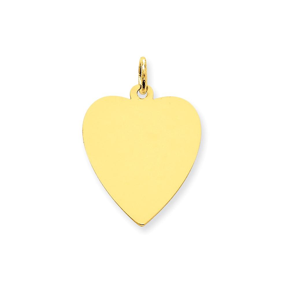 14k Yellow Gold Solid Polished Plain .011 Gauge Engraveable Love Heart Disc Charm 27x21mm Wide Pendant Necklace for Wome
