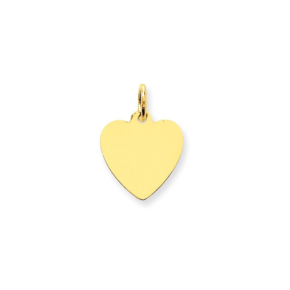 14k Yellow Gold Solid Polished Plain .018 Gauge Engraveable Love Heart Disc Charm 18x14mm Wide Pendant Necklace for Wome