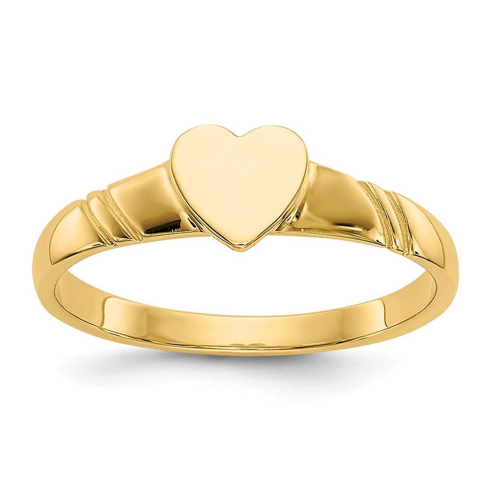 14k Yellow Gold Childrens Heart Ring - Size 3 - 1.3 Grams in 14k Yellow Gold - - Product Attributes: - Closed back - Engravable - Polished - Solid - - Band Width: 2 mm - Ring Top Length: 5 mm - Ring Top Width: 5 mm - Ring Top Width: 5 mm - Ring Top Length: 5 mm - Feature: Solid - Engravable: Yes -