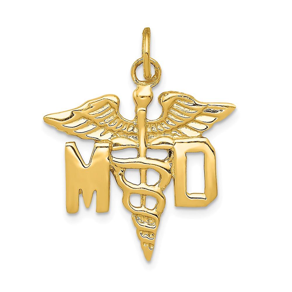 14k Yellow Gold Solid Polished Large M.D. Caduceus Charm 23x24mm Pendant Necklace for Women