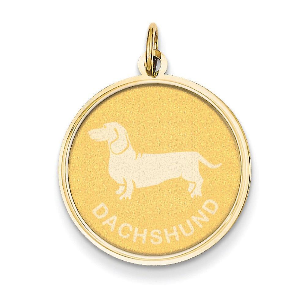 14k Yellow Gold Solid Polished Laser Etched Dachshund Disc Charm 26.2x19.2mm Pendant Necklace for Women