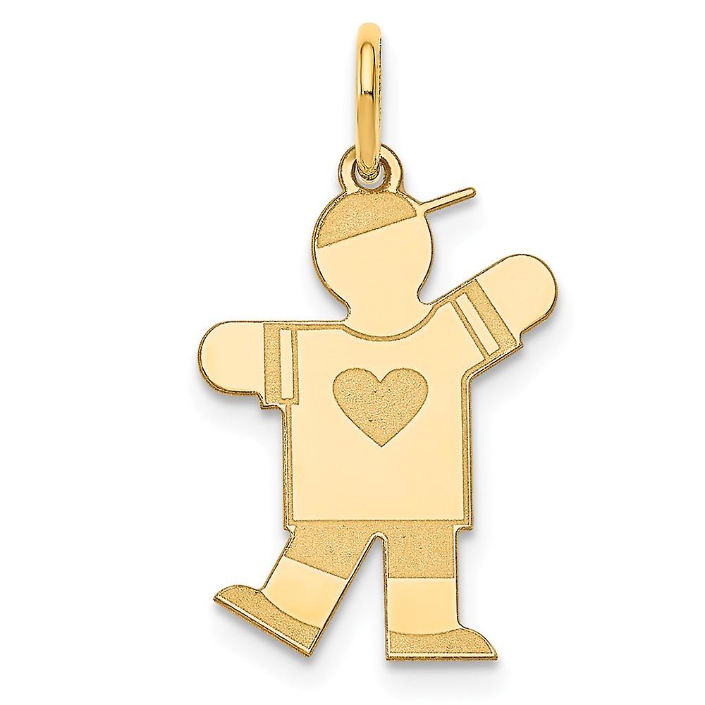 14k Yellow Gold Kid Charm - Measures 25x15mm Wide - .8 Grams in 14k Yellow Gold - - Product Attributes: - Engravable - Laser Etched - Not engraveable - Polished - Solid - - Charm/Element Width: 15 mm - Width of Item: 15 mm - Charm/Element Length: 25 mm - Length of Item: 25 mm - Feature: Lightweight - - This Item Does Not Ship With a Chain
