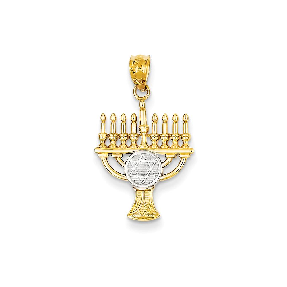 14k Yellow Gold Solid Polished Rhodium Plated Menorah Pendant Necklace 27x14mm Wide-Pendant for Women