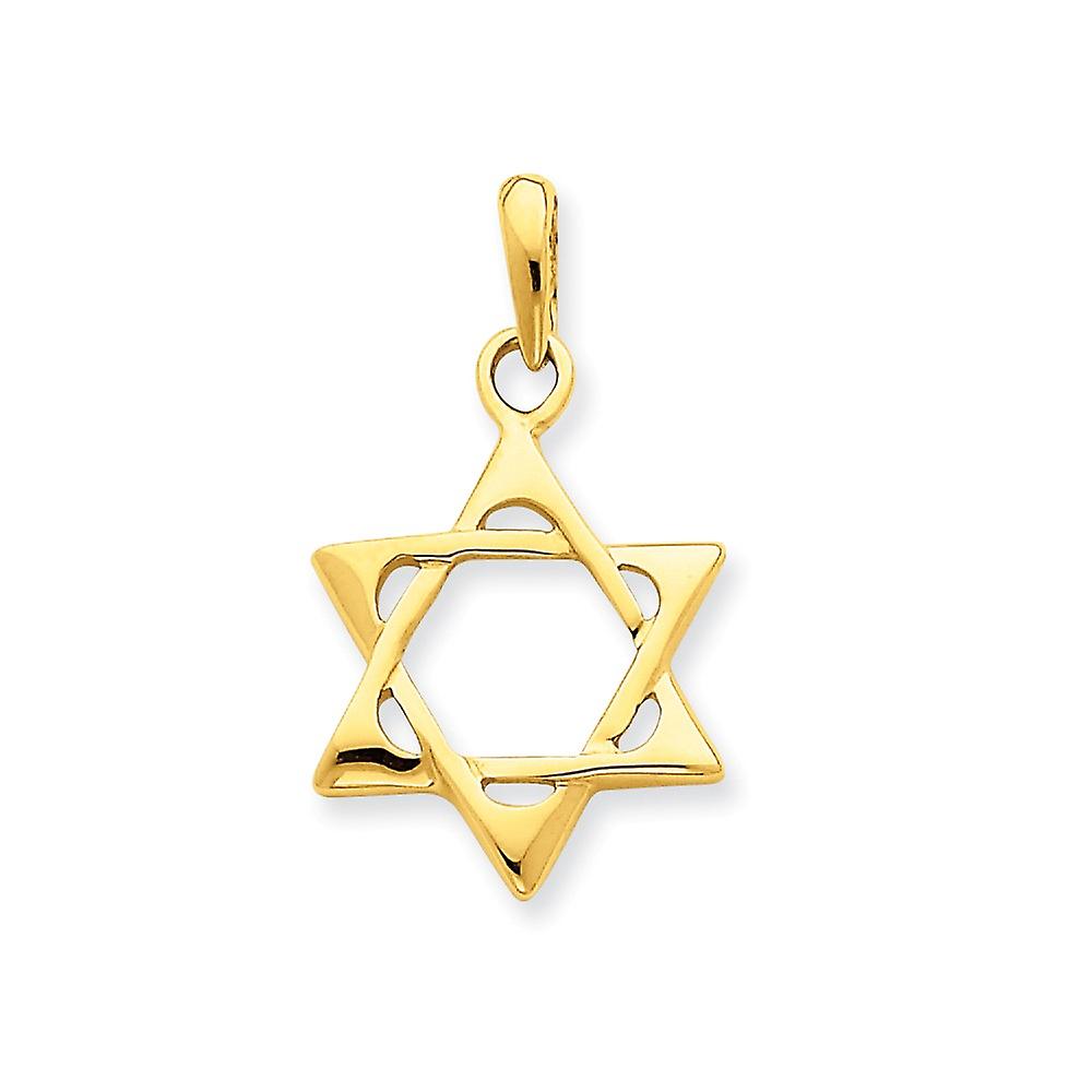 14k Yellow Gold Solid Polished Religious Judaica Star of David Pendant Necklace 17x19mm-Pendant for Women