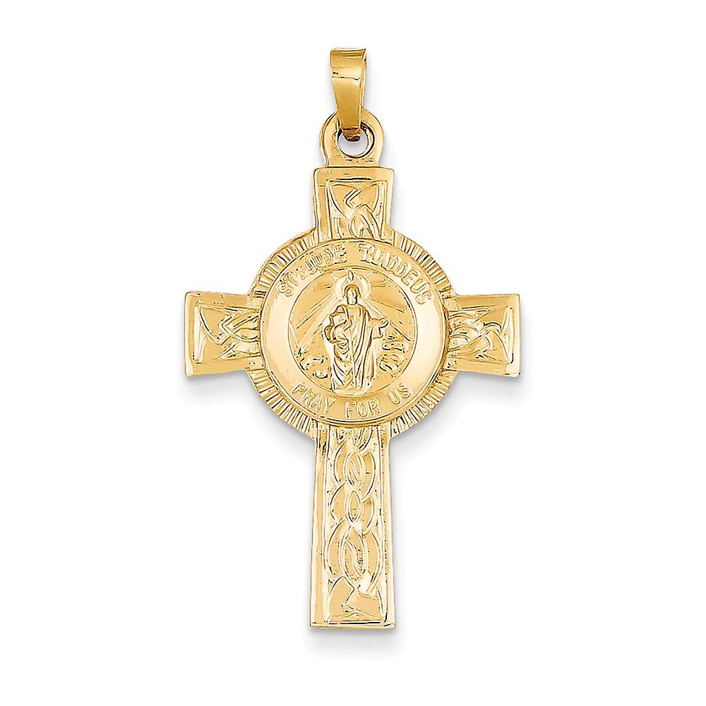 14k Yellow Gold Solid Polished Religious Faith Cross with St. Jude Medal Pendant Necklace 21.1x37mm-Pendant for Women