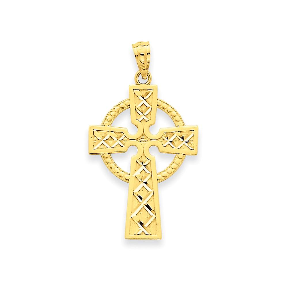 14k Yellow Gold Solid Polished Not engraveable Irish Claddagh Celtic Trinity Knot Religious Faith Cross Pendant Necklace