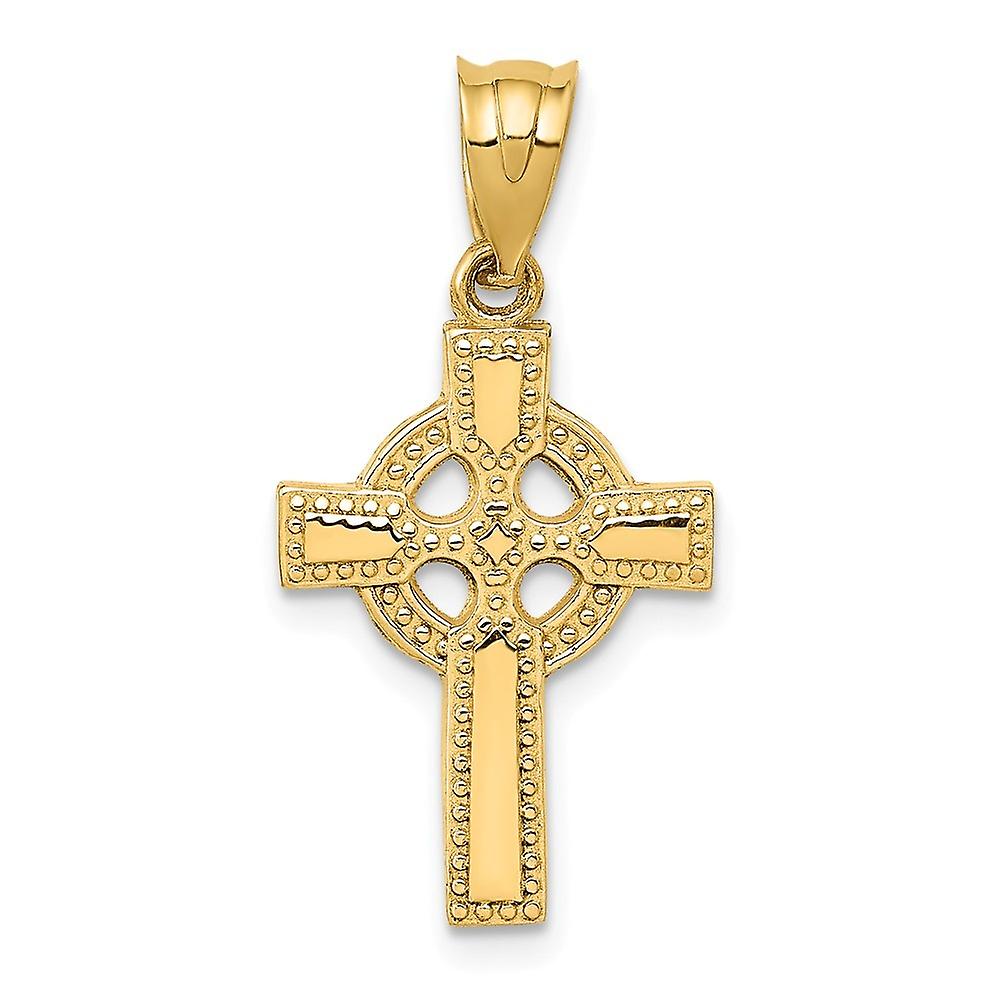 14k Yellow Gold Solid Polished Not engraveable Irish Claddagh Celtic Trinity Knot Religious Faith Cross Pendant Necklace