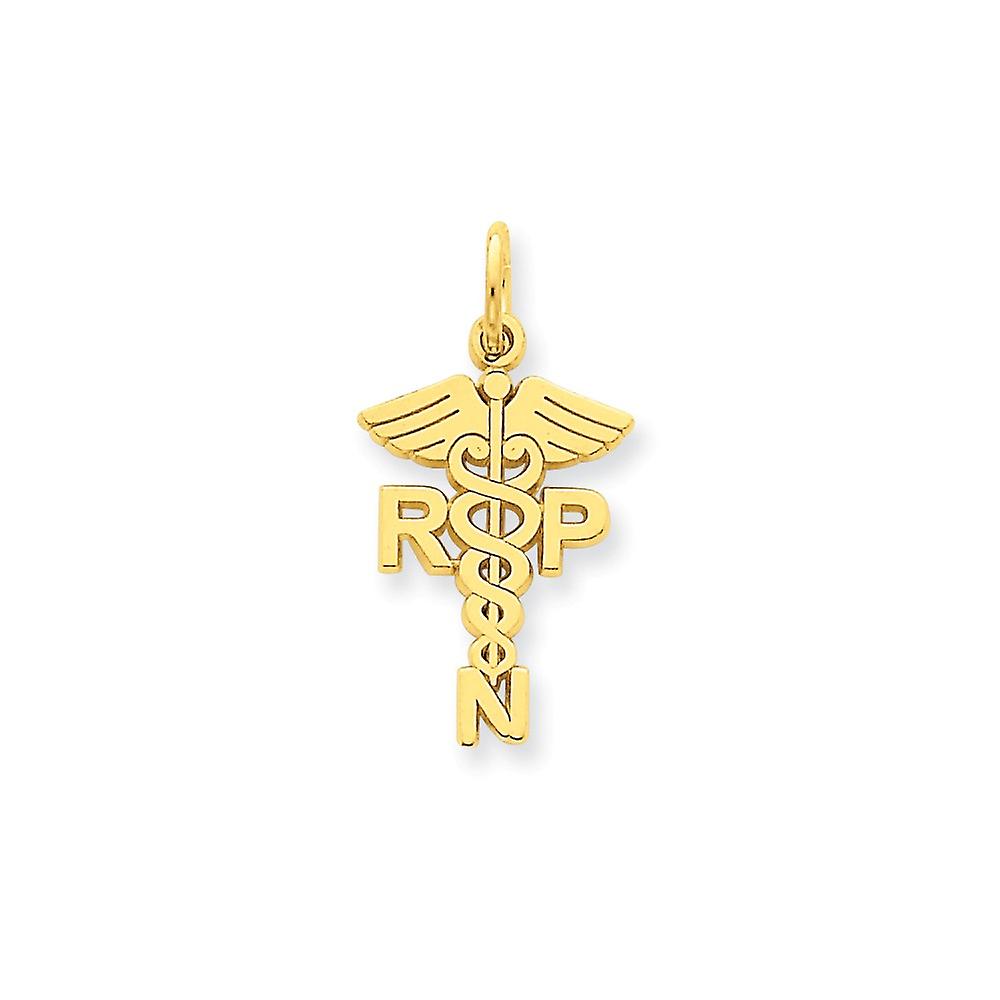 14k Yellow Gold Solid Polished Not engraveable Registered RN Nurse Caduseus Practitioner Charm 20x13mm Pendant Necklace