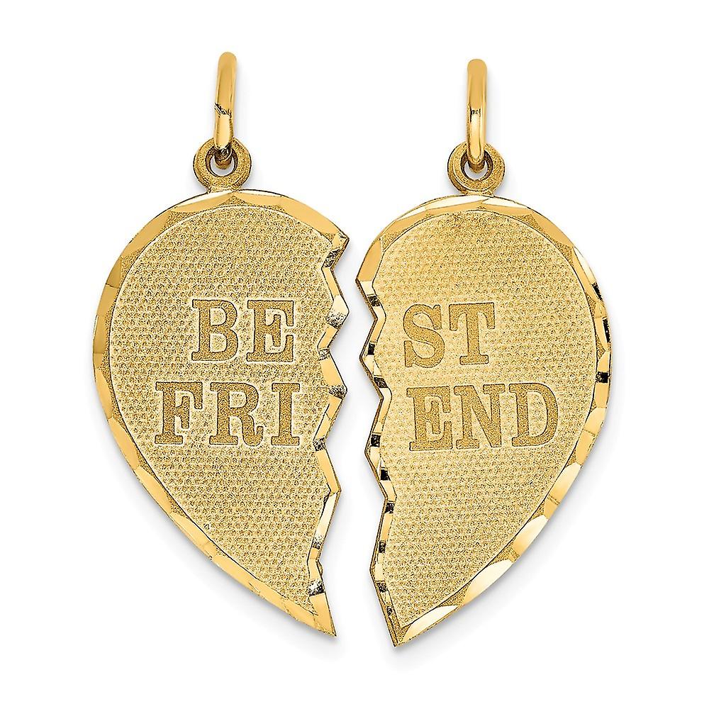 14k Yellow Gold Solid Polished Not engraveable Best Friend Break apart Charm 29.3x25.2mm Pendant Necklace for Women
