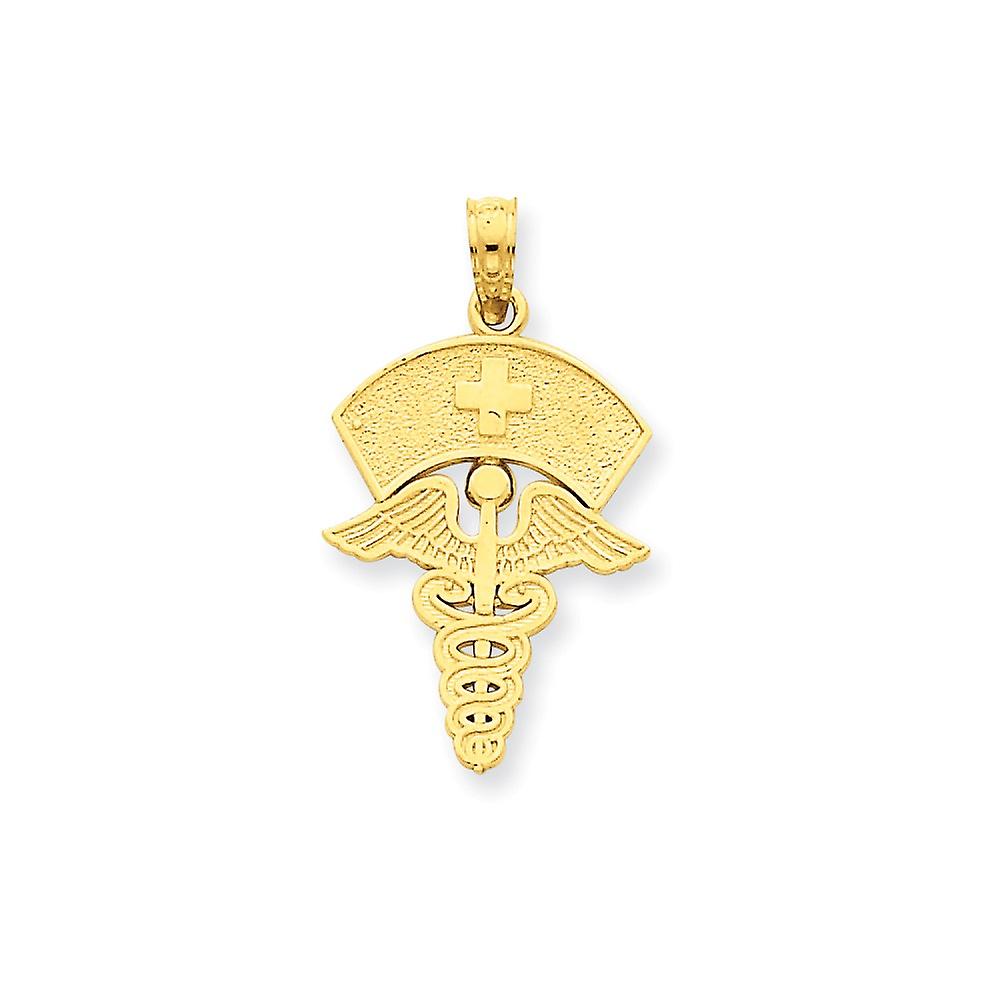 14k Yellow Gold Solid Polished Not engraveable Caduceus RN Nurse Caduseuss Cap Pendant Necklace 26x15mm-Pendant for Wome
