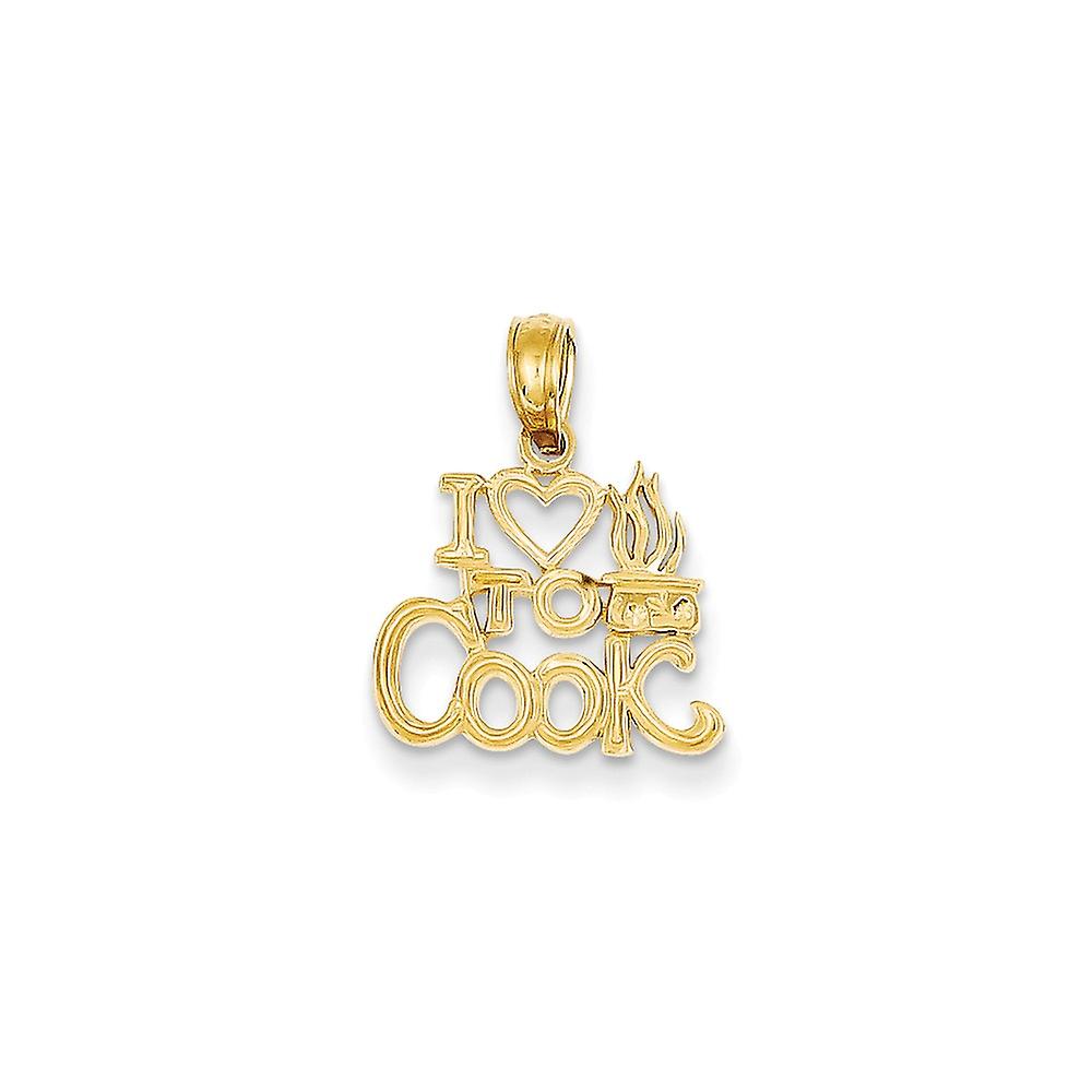 14k Yellow Gold Solid Polished I Love Heart To Cook Pendant Necklace 11.95x14.1mm Wide 0.6mm Thick-Pendant for Women