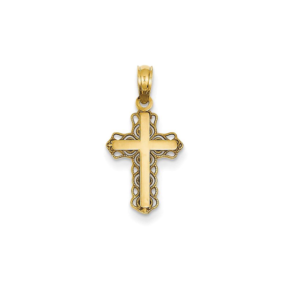 14k Yellow Gold Solid Polished Budded Religious Faith Cross Charm 11.9x22.8mm Pendant Necklace for Women