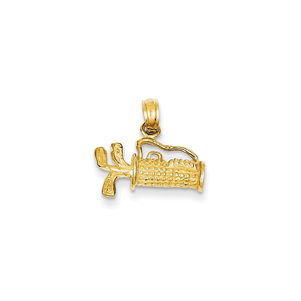 14k Yellow Gold Solid Polished 3 Dimensional Golf Bag with Clubs Charm 17.1x14.9mm Pendant Necklace for Women