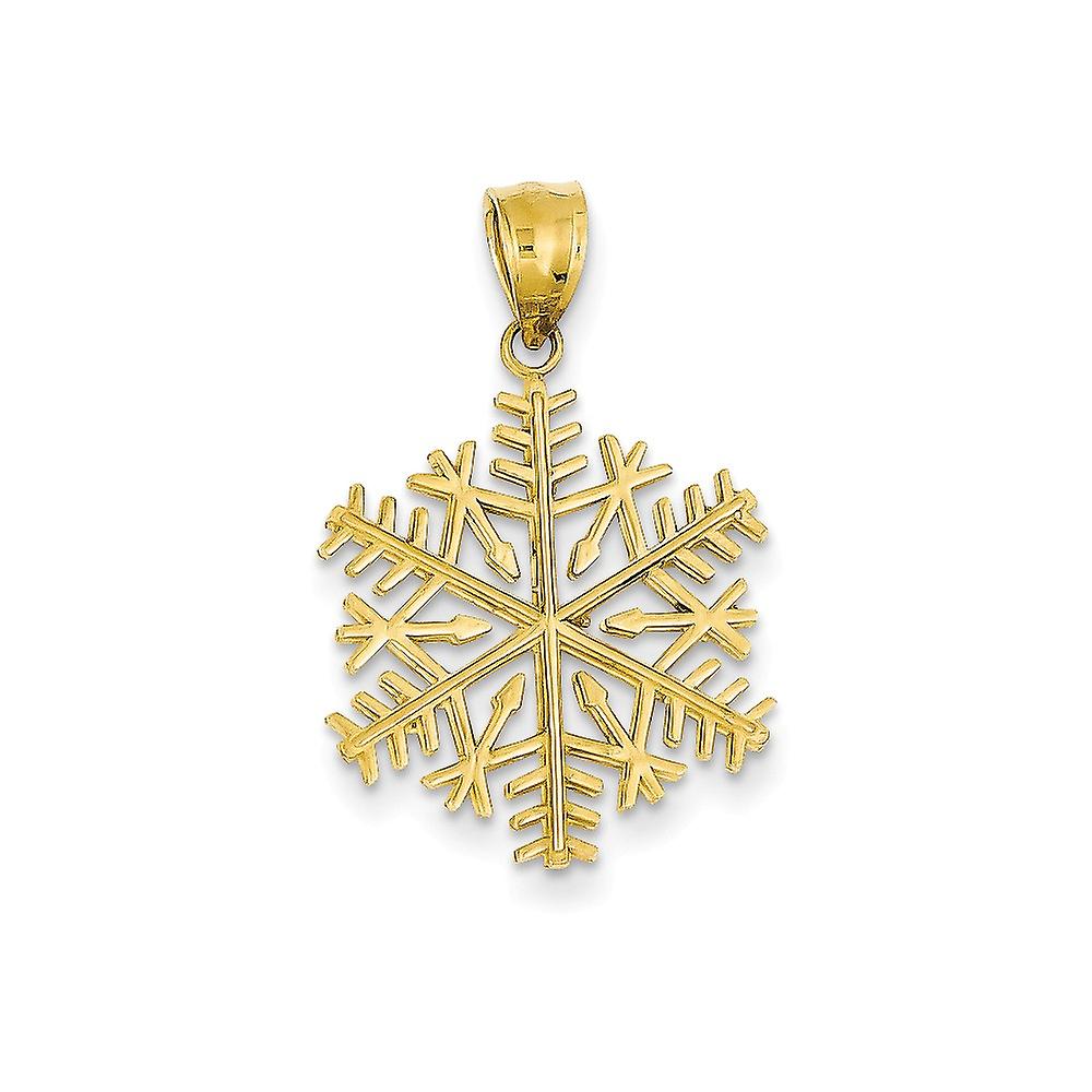 14k Yellow Gold Solid Polished 3 Dimensional Snowflake Pendant Necklace 27x18mm-Pendant for Women