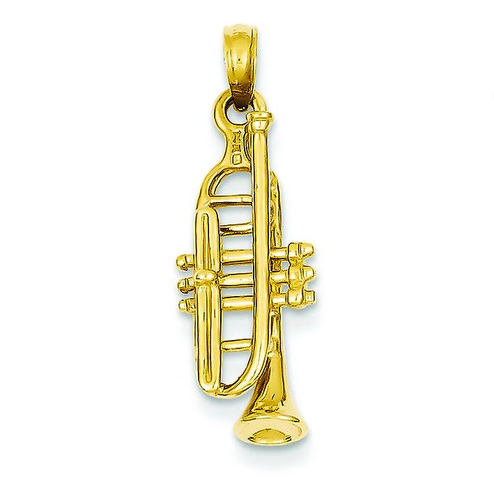 14k Yellow Gold Solid Polished 3 Dimensional Trumpet Pendant Necklace 27.9x8.6mm-Pendant for Women