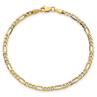 14k Yellow Gold Solid Polished 3.25mm Flat Figaro Chain Bracelet Lobster Claw Link-Bracelet for Women and Men - Length: