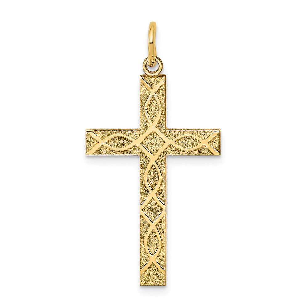 14k Yellow Gold Solid Laser Etched Polished back-Laser Designed Religious Faith Cross Pendant Necklace 33x16mm Wide-Pend